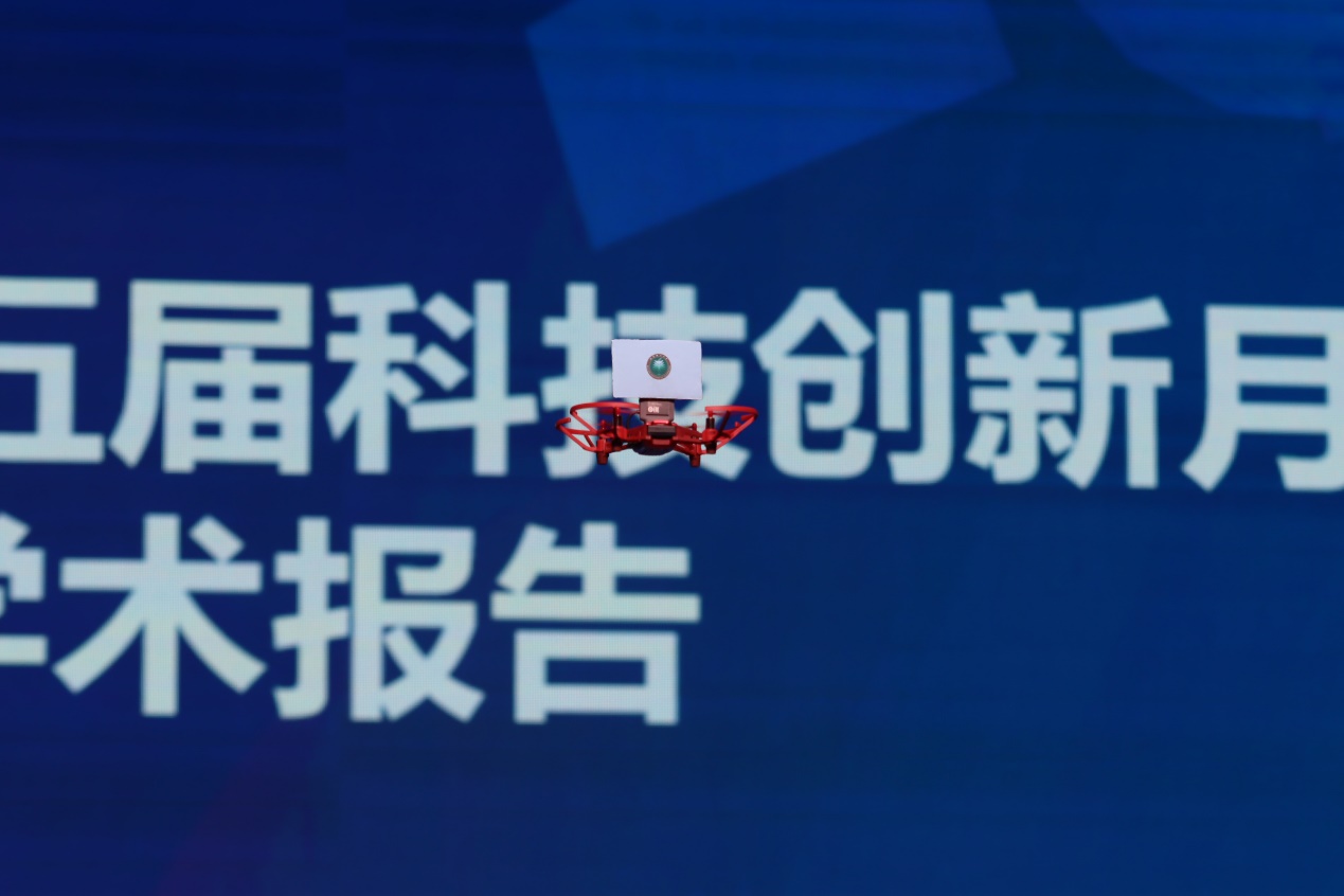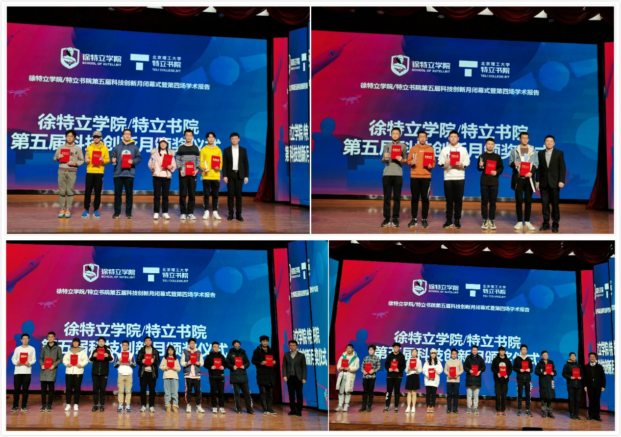 “科创报国,使命有我!特立学子献礼中国共产党百年华诞!”在北理工新葡的京集团35222vip第五届科技创新月闭幕式上,大一新生操控着分别载有校徽、院徽的科创无人机作品飞至颁奖台上空,掀起了现场的高潮。