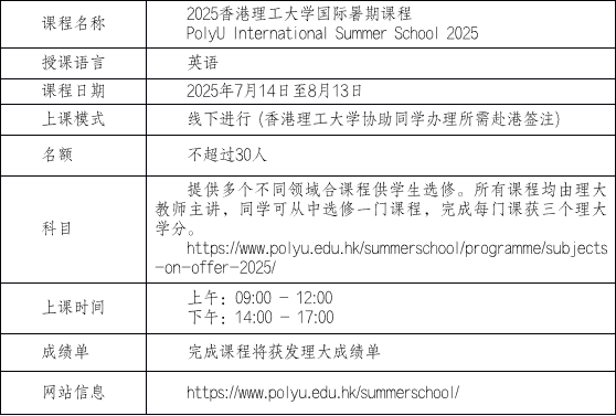 2025年香港理工大学国际暑期课程报名通知